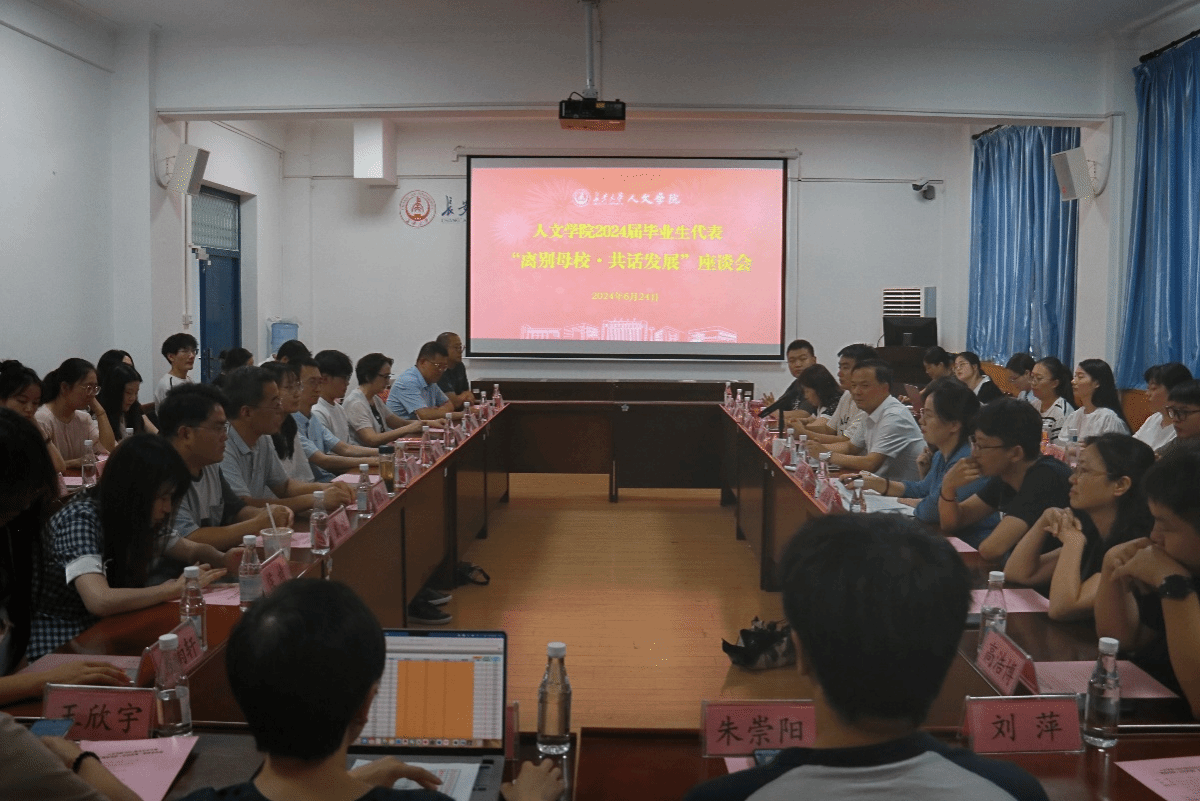 6月24日下午,人文学院在南校区北院基础楼428会议室召开“离别母校·共话发展”2024届毕业生代表座谈会。学院党政领导、各系(学科)教师代表、毕业班辅导员及学生代表等40余人参加会议。会议由学院党委书记何红娟主持。