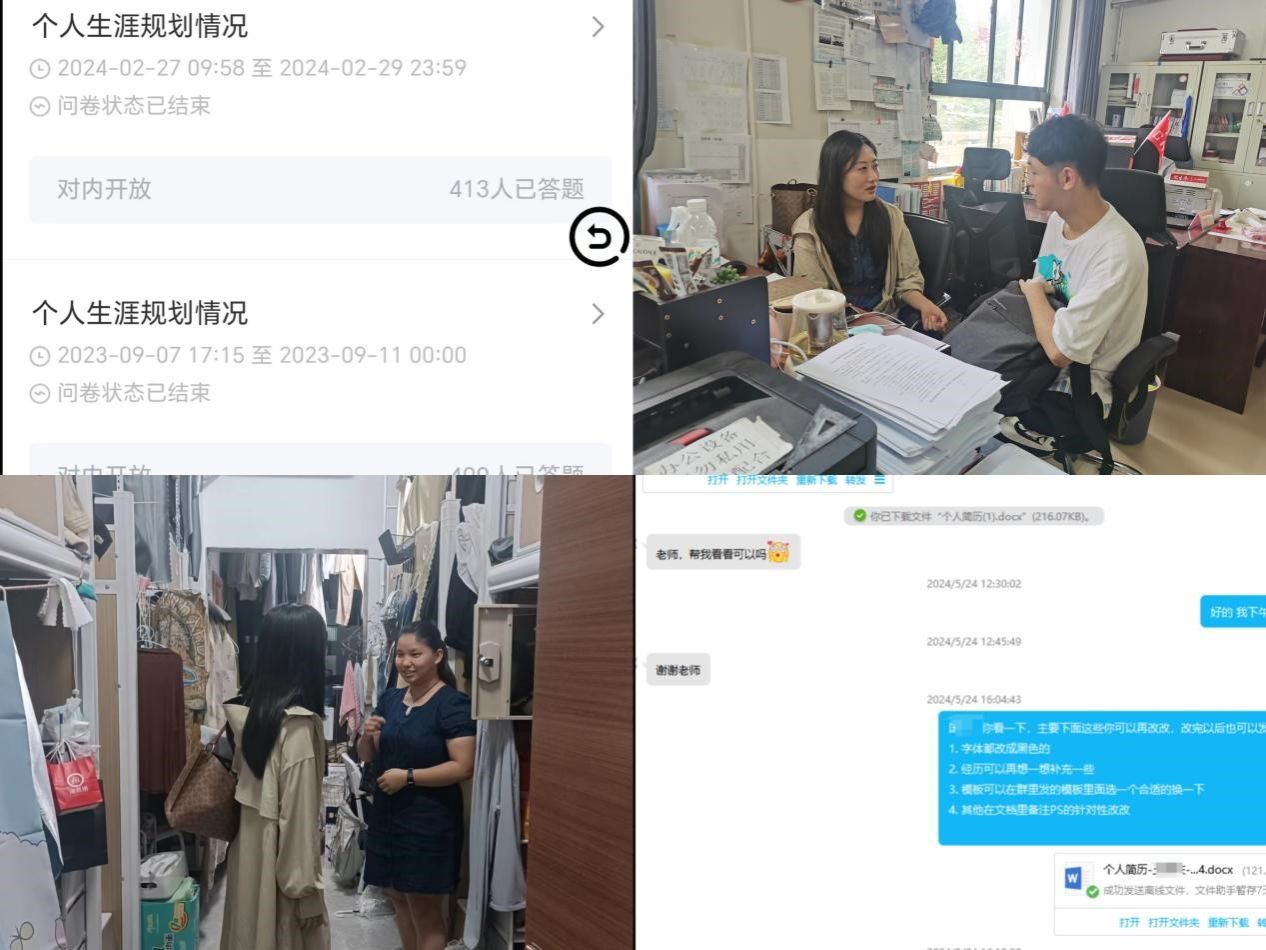 兴调研之风,针对困难“点”精准帮扶。为全面了解学院2025届本科毕业生就业意向,学院通过“我在长大”调查问卷模块,分别于学生大三上学期和下学期开展个人生涯规划线上调研,建立学生个人就业台账,为深入开展精准就业帮扶打牢基础。落实线上线下相结合,根据调研结果,利用线下一对一谈话、线上答疑解惑相结合的工作方式,开展针对性就业指导工作,与此同时,形成家校合力,引导毕业生树立正确的成才观、职业观、就业观,从实际出发选择个人就业目标。