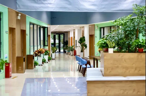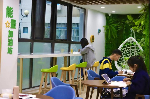 大厅位于朝晖园学生公寓9号楼与10号楼之间,建筑面积约2500m²。崭新的课桌椅、精致的文化墙、漂亮的花卉盆栽营造了开放自由、智慧时尚、锐意进取、情兼趣雅的学习生活氛围,助力实现“一墙一物会说话,一草一木皆育人”的社区文化浸润功能。办事大厅、多功能自习室、党员活动室、团体活动室、交流研讨室、学生社区“悦读空间”等空间的开放,拓展了学生公共服务空间、提升了文化氛围、激发了校园活力。未来,学业辅导室、生涯规划指导室、学生社区心理辅导站、秦疆情少数民族学生工作室、学生自助服务区、咖啡厅等场地的投入使用更将让这里成为集生活、学习、交友、学术交流、文化育人功能于一体的教育生活园地,促进学校实现服务、文化、环境等全方位一流目标,全力推进三全育人,落实十大育人体系。