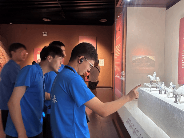 在宁夏博物馆,实践团队先后参观了“石刻史书—宁夏岩画展”“朔色长天—宁夏通史陈列”“红旗漫卷—宁夏革命文物陈列”“天下黄河富宁夏—宁夏民俗陈列”等基本陈列,了解宁夏发展历程、民俗文化、特色文化资源,感受宁夏经济社会发展取得的翻天覆地变化。