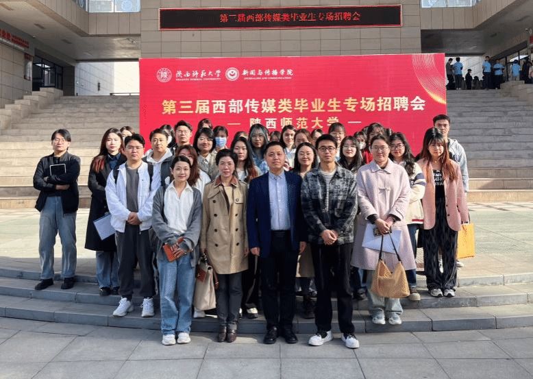 应主办方陕西师范大学新闻与传播学院邀请,人文学院党委副书记王东,新闻系主任崔慎之,毕业班辅导员李贤、王亚杰,以及学院部分研究生和本科毕业生参加本次专场招聘活动。