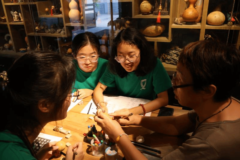 阮琳向实践队员介绍兰州刻葫芦