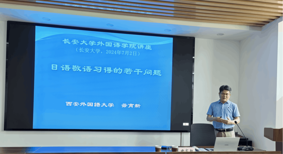 7月2日下午,外语学院在学院报告厅举办以《日语敬语习得的若干问题》为主题的学术讲座,本次讲座由西安外国语大学研究生院院长兼日本文化经济学院院长毋育新教授担任主讲,学院日语系主任韩春娟主持,日语系全体师生共同参加。