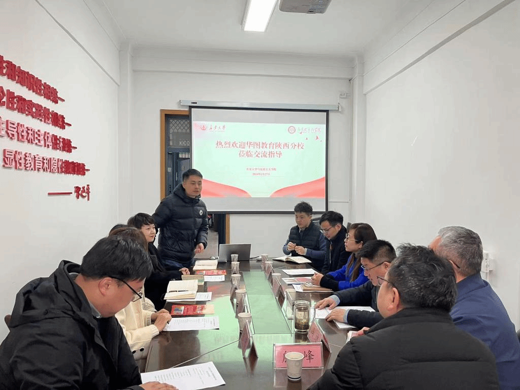 2月28日,华图教育陕西分校人力总监李森、高校渠道负责人马柯等受邀来马克思主义学院洽谈校企合作事宜。院党委书记李小芹、院长陈怀平、院党委副书记冯迪、思政系主任杨超、思政系党支部书记殷峰、院团委书记杨帆和学院全体辅导员参加会议。