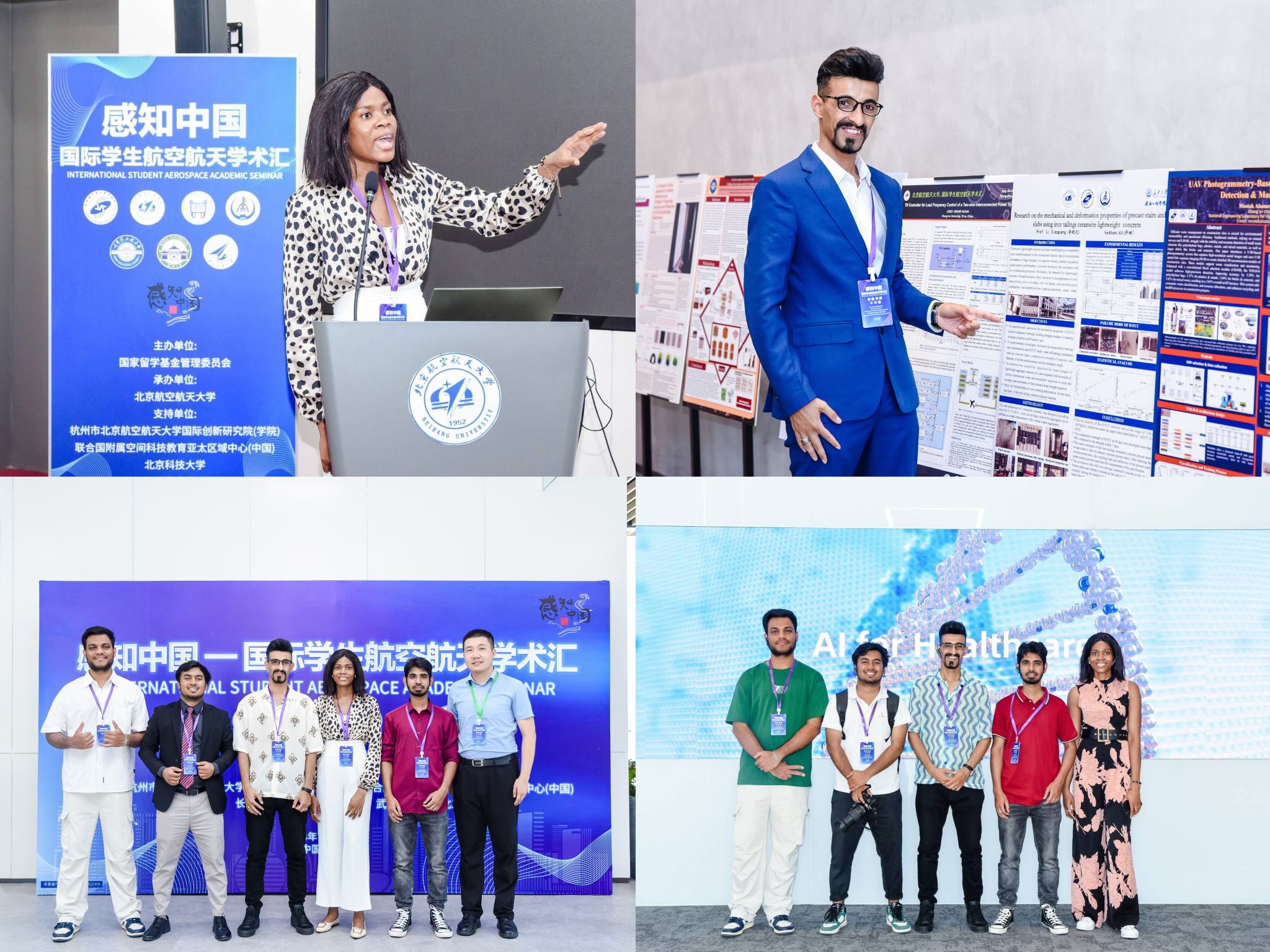 本次学术活动以“空天赋能智创未来”为主题,分为专家主旨报告、学生主题报告、论文墙报展示、分组交流等环节。期间,bat365尼日利亚籍博士研究生乔丽做了题为“Early warning temperature for high-temperature deformation in airfield asphalt overlay composite pavement”的报告,bat3654名国际学生代表参加了论文墙报展示环节。也门籍博士研究生萨姆、孟加拉籍博士研究生大河获得最佳学术海报奖。会议结束后,学生们还前往了北航小卫星实验室、阿里云总部、瓶窑老街、良渚古城、西湖等地参观访学。
