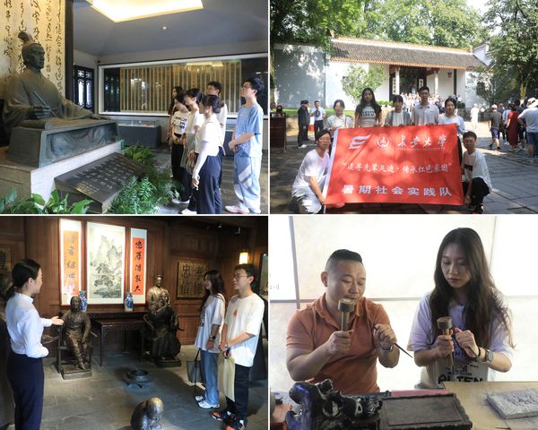 实践队一行前往贾谊故居学习贾太傅祠、寻秋草堂及各代文豪大儒凭吊贾谊所撰写或雕刻的诗词,在岳麓书院参观了赫曦台、讲堂、半学斋、文庙等地,对敢为人先的湖湘文化有了更为深刻的认识;在长沙市非物质文化遗产展示馆中,了解湘绣、浏阳花炮、长沙花鼓戏等非遗文化的起源及发展,跟随非遗传承人周贤耀大师体验菊花石雕的制作方法。