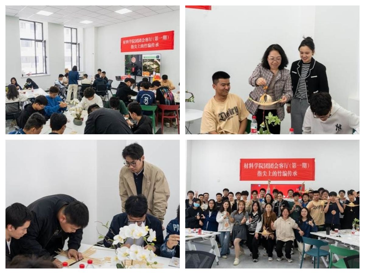 本次会客以“指尖上的竹编传承”为主题,学院师生在一场沉浸式美育体验活动中展开互动交流。实践体验前,参加活动的师生围绕习近平总书记关于文化自信、非遗传承、青年观等重要讲话原文进行会前自学;活动现场,2023310211班班长高泽坤向参加活动的师生详细介绍了非遗竹编,并通过两个竹编实际制作过程和非遗传承的视频,生动展示了传统竹编工艺的六个流程,砍竹、破篾、修篾、染篾、编织、整形。
