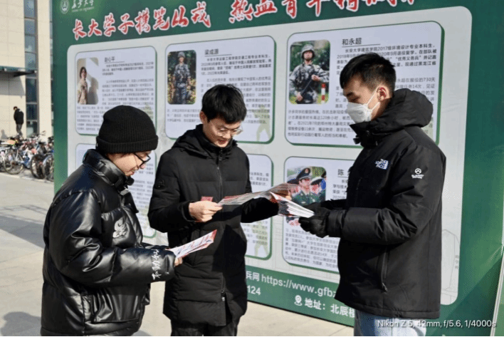 为落实陕西省征兵办要求,切实有效做好2024年上半年征兵工作,12月18日起,学校武装部开展为期1个月的“长大学子携笔从戎,热血青年精诚报国”征兵宣传活动。