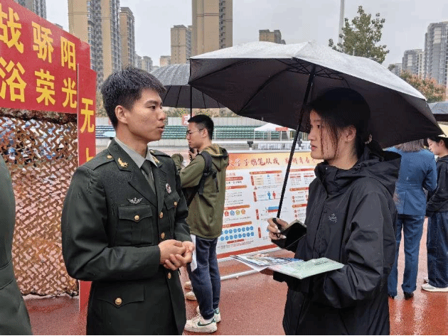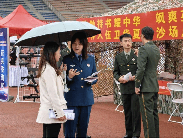 为起到更好的宣传效果,活动现场设置临时征兵宣传站点,武装部工作人员通过树立宣传展板、悬挂宣传条幅、发放宣传手册等方式,吸引了众多学生前来了解征兵的相关信息。弘毅中队征兵宣传员身着军装,耐心细致地为来咨询的大学生讲解征兵时间、报名条件和优待优惠等相关征兵政策,回答同学们对退役后的复学、升学、就业、学费减免等方面的疑虑。活动中共发放宣传手册2000余份。
