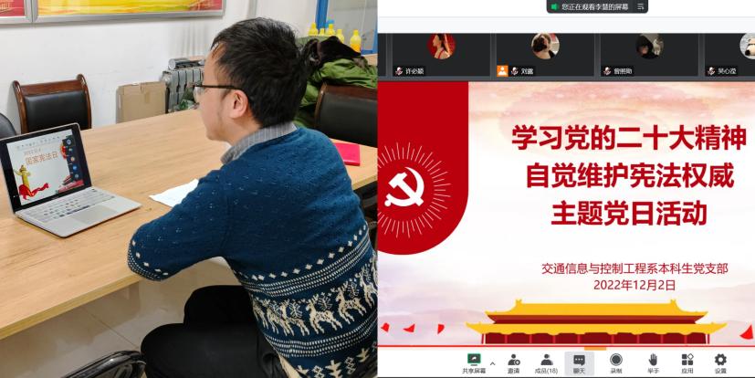 宪法进支部,知法强信念。12月2日至3日,学院组织各学生党支部开展“学习宣传党的二十大精神,自觉维护宪法权威”主题党日活动和党支部书记讲党课活动。各党支部围绕宪法的诞生、意义、作用等内容开展学习,并观看普法宣传片《宪法的颜色》;号召党员自觉把学习宪法与学习贯彻党的二十大精神结合起来,与自身学习生活结合起来,弘扬宪法精神,自觉维护宪法权威。