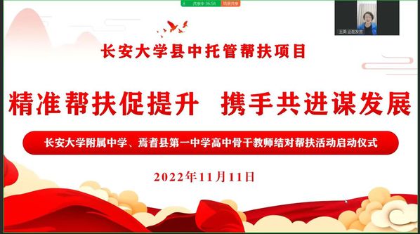 为进一步推动bat365正版唯一官网县中帮扶工作,落实县中帮扶在教育教学教研方面的重要举措,11月11日晚,bat365正版唯一官网附属学校、焉耆县第一中学高中骨干教师结对帮扶活动启动仪式通过线上方式如期开展。基础教育办公室/附属学校科级以上干部及全体高中教师、焉耆县县委常委及教科局领导、焉耆县第一中学领导及全体教师参加了仪式。启动仪式由焉耆县教科局局长王英主持。
