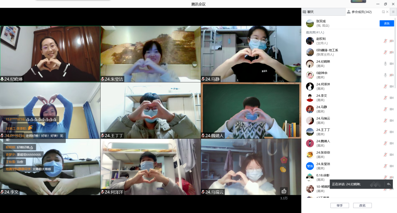 在本次主题互动会上,地测学院师生校友通过分享战疫故事,讲述抗疫感悟,表达了对志愿者和许许多多在抗疫一线坚持奋斗的抗疫战士们最崇高的敬意。