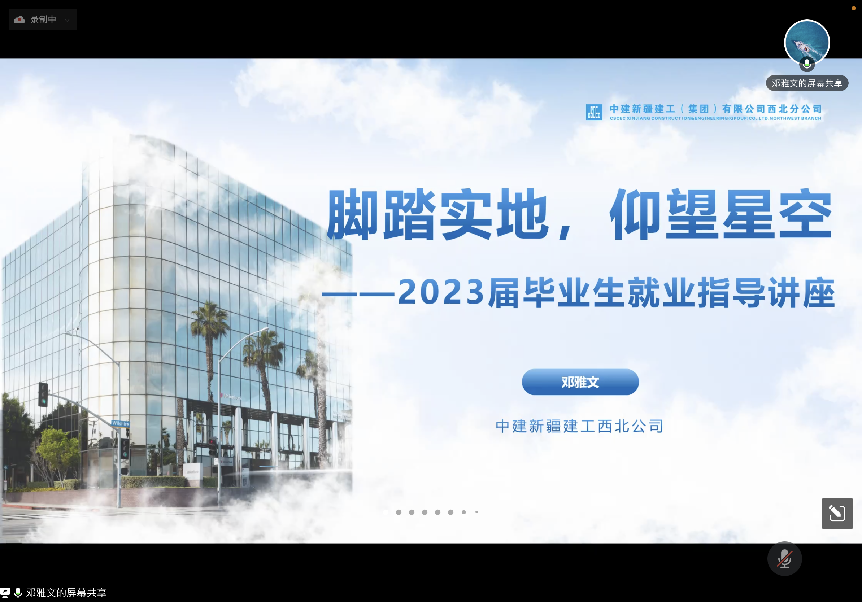 为进一步做好2023届毕业生就业工作,不断提升毕业生的就业能力,建工学院于7月18日举办了2023届毕业生线上就业指导讲座。讲座由中建新疆建工西北公司助理总经理兼人力资源部经理邓雅文主讲,学院党委副书记孟庆鹏,学生工作办公室主任刘云博,2019级辅导员王立勋、寇大为,2023届本科毕业生参加了活动。