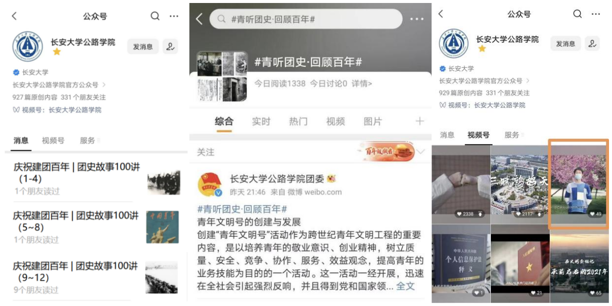 统筹做好宣传文化工作。学院团委在学院微信公众号设置“团史故事100讲”专栏,在学院团委微博设置#青听团史·回顾百年#话题,在学院微信视频号推送“庆祝建团100周年,青春建功新时代”系列视频,全面展现党领导中国青年运动的百年历史和党对共青团工作的关怀重视,展现广大团员青年的学习成效,营造热烈浓厚的舆论氛围,以高昂的精神状态和接续奋斗的姿态喜迎党的二十大胜利召开。