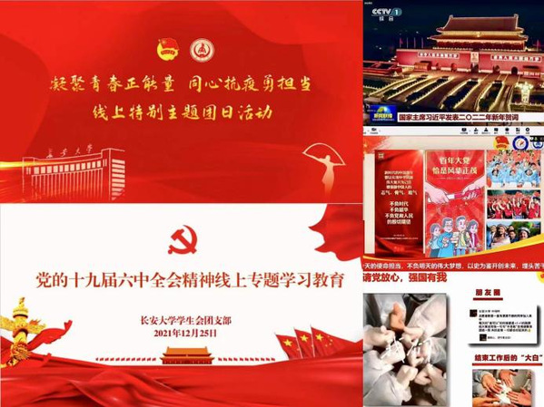 凝聚青春之识,在思想引领中做先锋。学生会听从指挥战疫情,争当表率筑防线。疫情发生后,第一时间和研究生会共同发出《致bat365正版唯一官网全体同学的倡议书》,号召广大同学统一思想认识,增强行动自觉。校院两级学生会团支部开展“凝聚青春正能量·同心抗疫勇担当”线上主题团日和红色观影等文体活动百余次,深入学习党的十九届六中全会精神,热议国家主席习近平发表的二〇二二年新年贺词,从百年党史中感悟初心使命,汲取奋进力量;通过寻访抗疫志愿服务榜样,聆听青春抗疫故事,引导同学在疫情防控中厚植家国情怀,强化责任担当。发布“青春抗疫展风采·共克时艰有担当”等抗疫主题推文400余篇,推文多次被共青团中央、陕西学联官微转载采用。