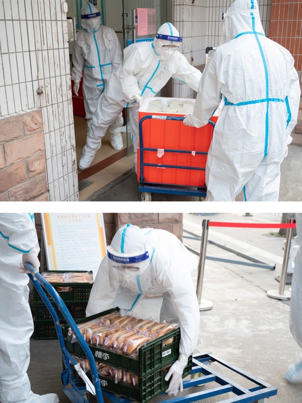 化身“保障员”,打造防疫保障链。为了保障学校学生饮食正常,机械研究生志愿者们化身“送餐员”,一日三餐为同学们送上热气腾腾的饭菜,带去爱和温暖。为了保障学校师生的物资需求,他们化身物资“搬运员”,不惧辛苦、吃苦耐劳,穿梭在货车与仓库之间,争分夺秒搬物资,全力保障师生生活物资,助力打造了有力的防疫保障链。