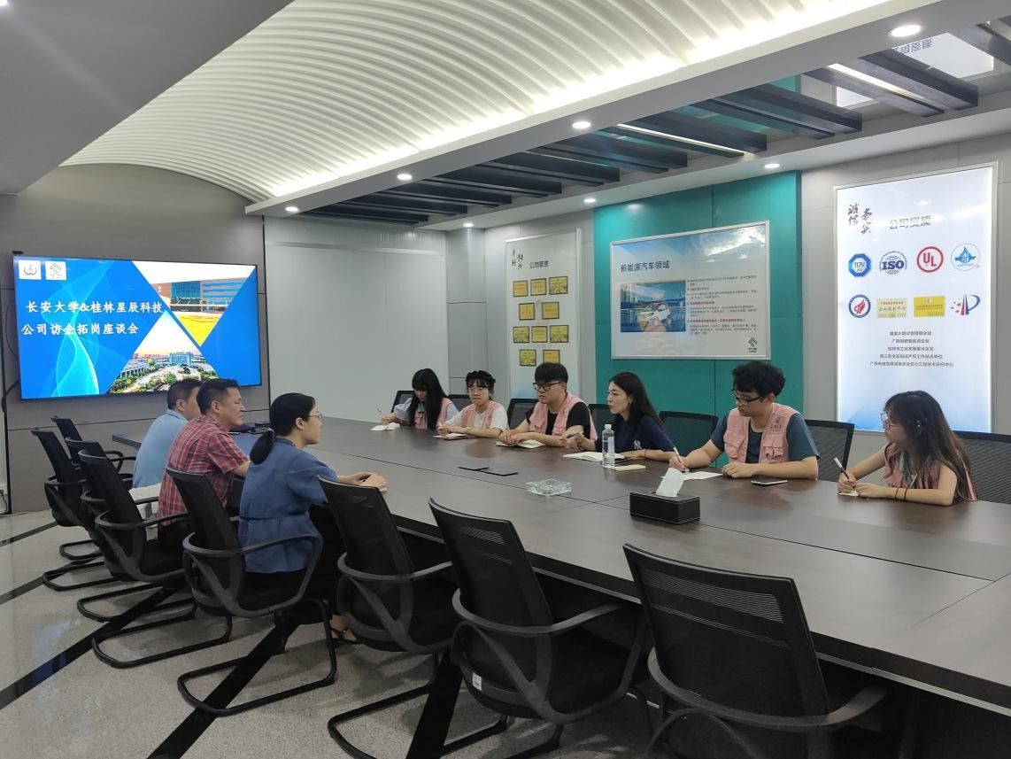 7月29日,学院赴桂林星辰科技股份有限公司走访调研,办公室主任黄业峰、人力资源经理蒋桂香参加座谈。桂林星辰科技有限公司负责人从公司概况、企业发展战略、人才招聘要求等方面分别介绍了相关情况。姜雨彤就学院在统计、建模等方面的特色和优势进行了介绍,重点介绍了学院的师资力量以及学生在学科竞赛方面取得的优异成绩,并表达了与企业开展更广泛合作的愿景,希望能够促进学生就业和企业人才需求的双赢,推进产学研深度融合。