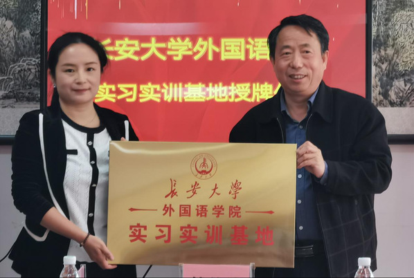 宋春红代表学院与岐山县恒源戏剧培训公司签订校企合作协议书,并为公司授予“bat365正版唯一官网外国语学院学生实习实训基地”牌,双方就日后的交流合作达成初步共识。