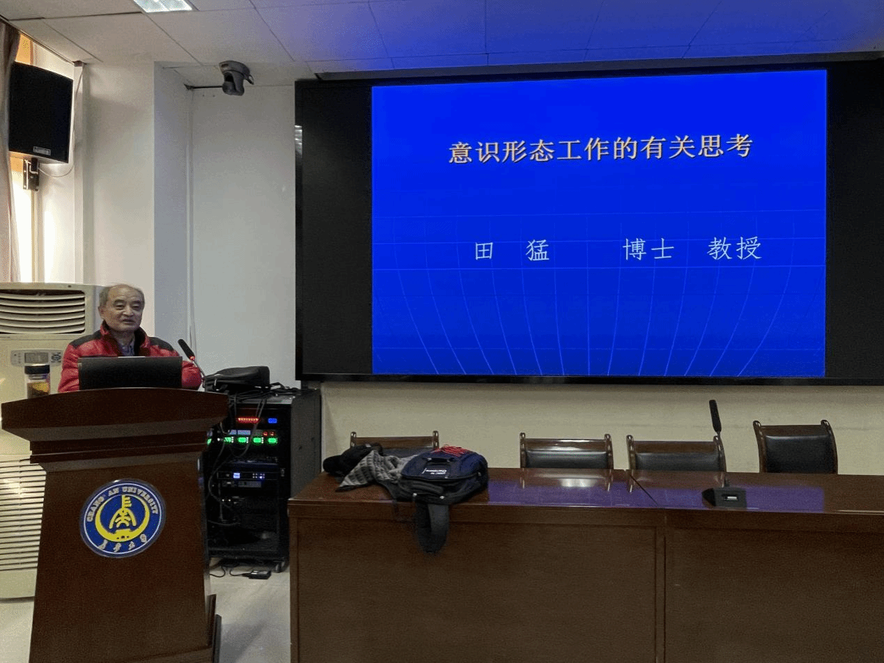 为深入贯彻落实党中央对意识形态工作的部署和要求,加强党对意识形态工作的领导,增强意识形态风险防范意识,提升做好意识形态工作的能力水平,3月6日上午,外国语学院党委特邀马克思主义学院田猛教授作《意识形态工作的有关思考》专题培训。学院领导班子全体成员参加培训,培训会由学院党委副书记宁育国主持。