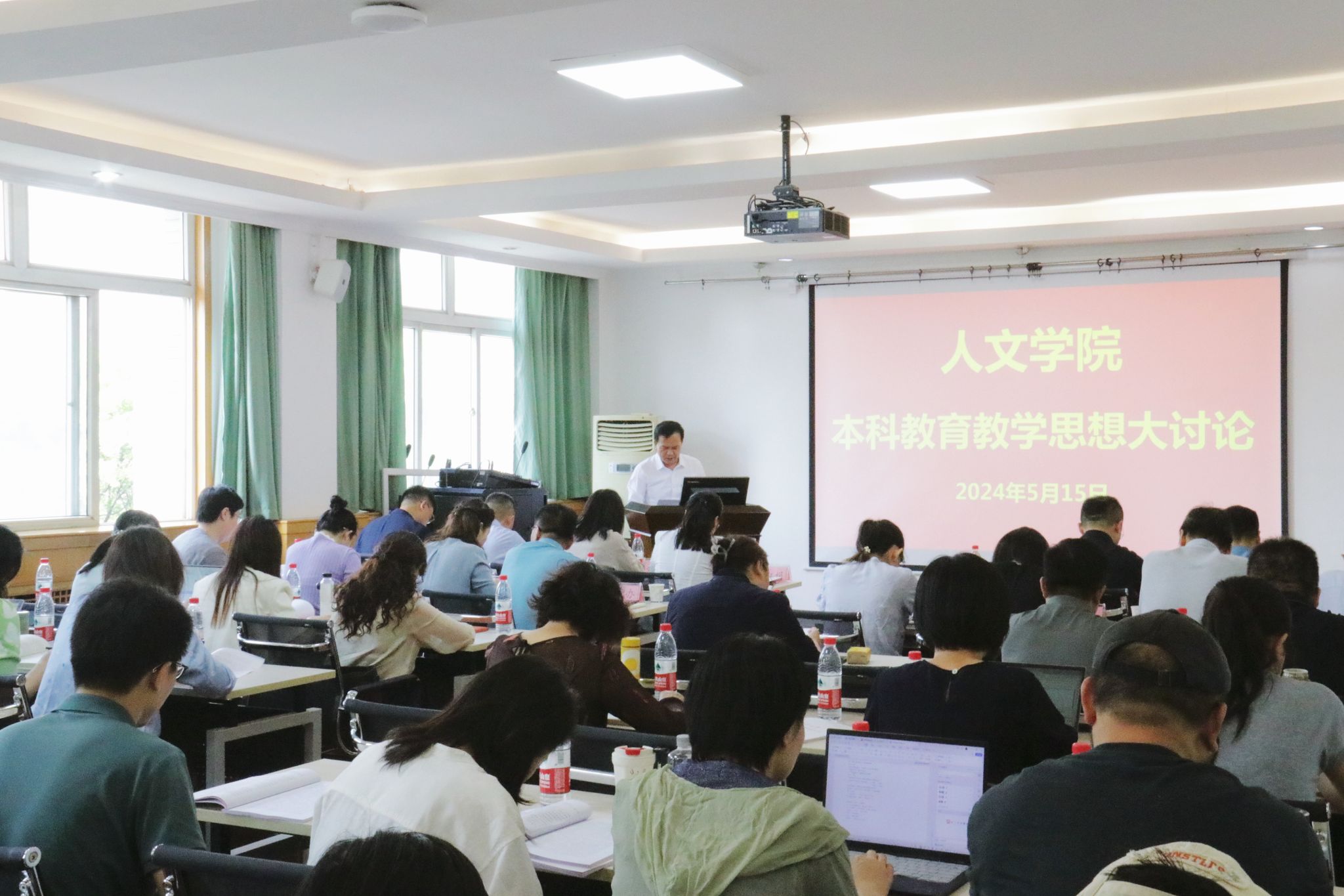 为进一步做好本科教育教学审核评估工作,落实立德树人根本任务,扎实提升本科人才培养质量,5月15日,人文学院在学院412报告厅举行本科教育教学思想大讨论。人文学院领导班子全体成员、全体教职工、各专业本科生代表,校学生工作部、校团委、发展规划处、教务处、教育研究与评估中心、招生就业处、人事处、高层次人才办公室、实验室设备与管理处、国际合作与交流处等学校各职能部门领导参加会议。本次大讨论分为上午和下午进行,上午由人文学院党委书记何红娟主持,下午由人文学院院长杜智民主持。