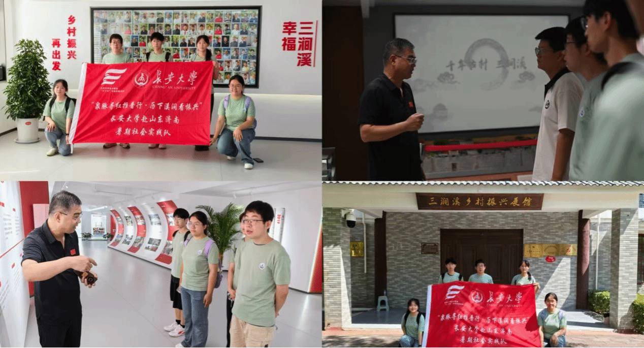 青春挺膺担当,助力乡村振兴。为深入了解数智赋能乡村振兴的实践成果,助力共同富裕目标的实现,实践队成员于7月17日上午前往章丘区三涧溪村开展实践活动。走进三涧溪村数字服务中心,一张“三涧溪社会治理现代化综合平台”大屏幕映入眼帘,动态展示着乡村党建、村务组织、产业管理、积分共治、人才振兴等情况。团队成员来到党群服务中心,通过了解三涧溪的党建历史和有力举措,更加真切体会到三涧溪村对“听党话、感党恩、跟党走”的贯彻落实和坚定践行。