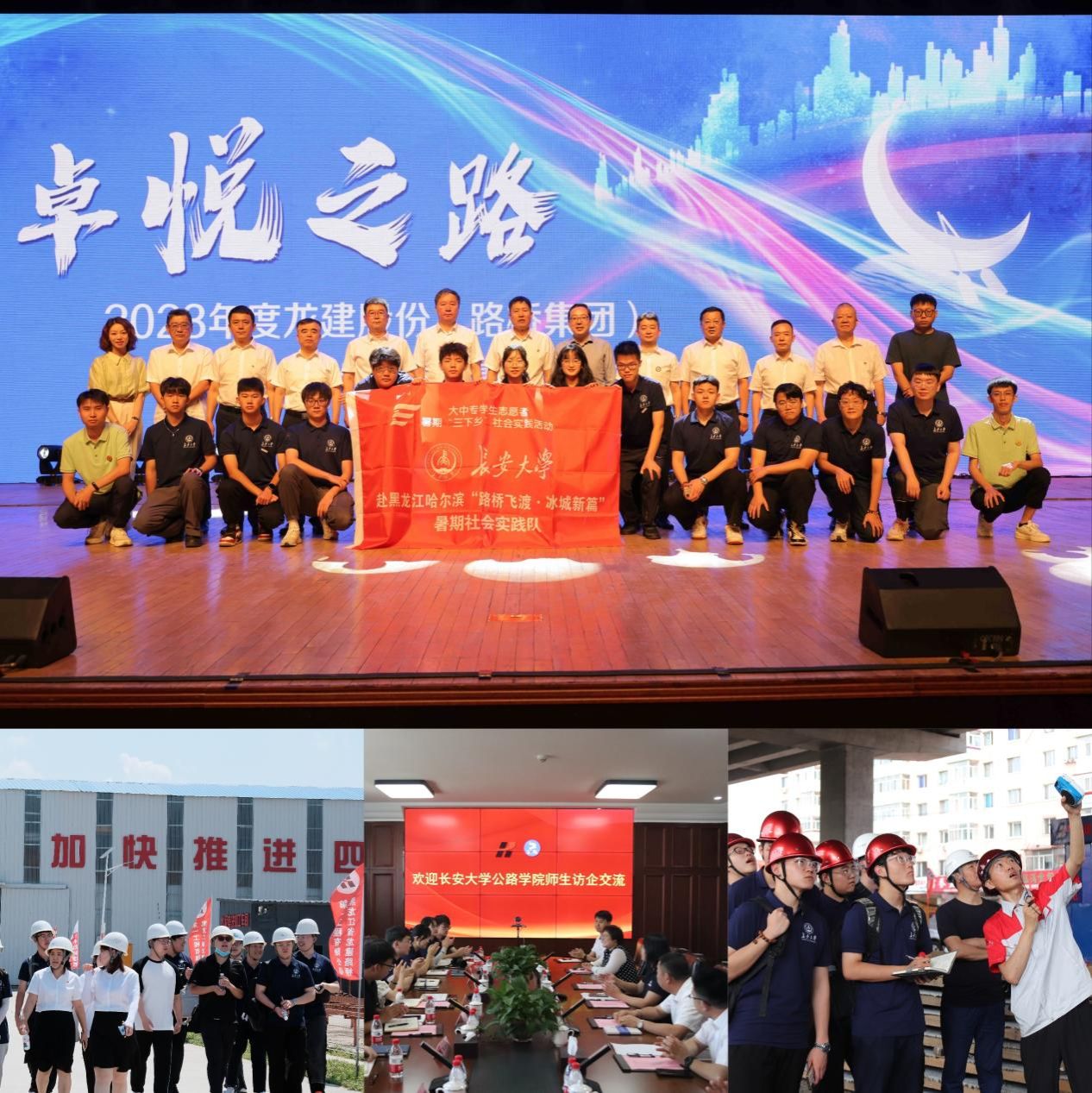 实践队走进龙建路桥股份有限公司,分别与龙建路桥集团股份有限公司和第一、五、六工程有限公司的总工程师、人力资源部与研发中心负责人座谈,六公司总工程师陈少毅呼吁年轻人从基层做起,在施工现场体会桥路建设的每个环节,在实操中担当交通人的责任使命。在哈尔滨东三环快速路工程、吉黑高速工程施工现场,实践队零距离观摩项目施工中的工法技术、工艺流程、人员机械配备和标准化作业情况,细致观察Yfb12d型数控钢筋剪切生产线中钢筋弯箍机的生产过程以及桥梁结构封端过程,重点了解BIM和工程实体AR虚拟成像技术的应用、智慧工地云平台的开发与使用。实践队还受邀参加龙建路桥新员工欢迎仪式,见证新入职员工从校园到职场的角色转变,实践队员陈初阳表示,毕业不是学习生涯的结束,我们在校期间更应该加倍学习,夯实专业基础、明晰努力方向,这样才能勇立时代潮头,在以后的工作中有所作为。