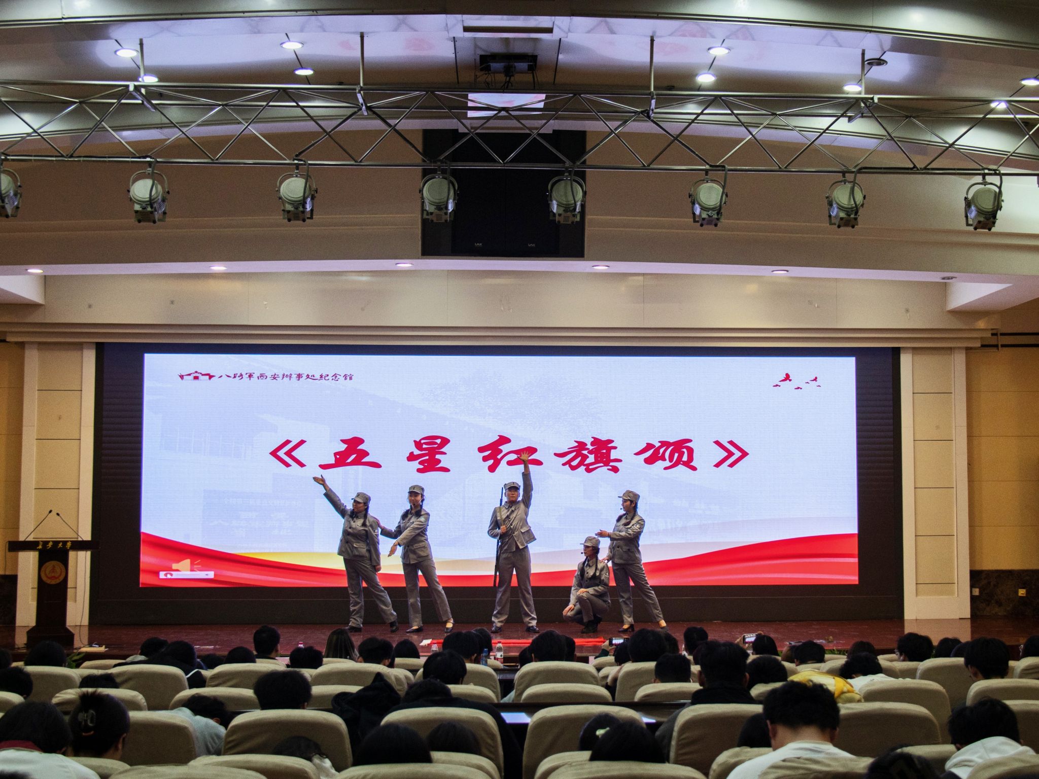 八路军西安办事处纪念馆“理想•信念”宣讲团紧扣新时代宣传导向,以党史党性教育为核心,以“八办”老一辈无产阶级革命家的理想信念和革命精神为载体,通过主题演讲《希望的火种在这里点燃》《红色的桥梁,永恒的纪念》、歌舞表演《五星红旗颂》、歌曲演唱《团结就是力量》等,生动再现了抗战时期舍身为国的英雄形象和可歌可泣的革命故事,激发起全体成员的爱国之情,为大家带来了一堂生动的党史教育课。