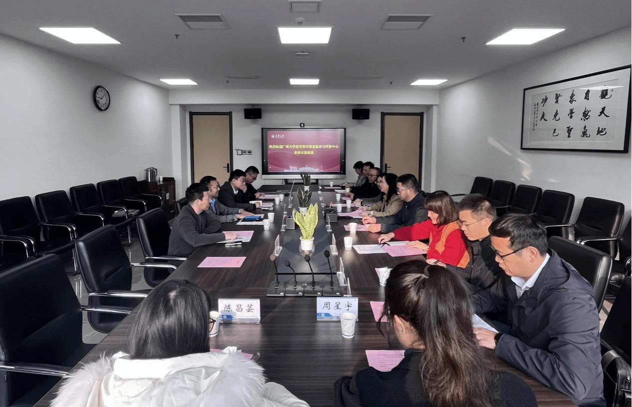11月7日上午,广西大学教育教学质量监控与评价中心梁微一行11人来校调研交流。教育研究与评估中心主任赵现伟主持会议。