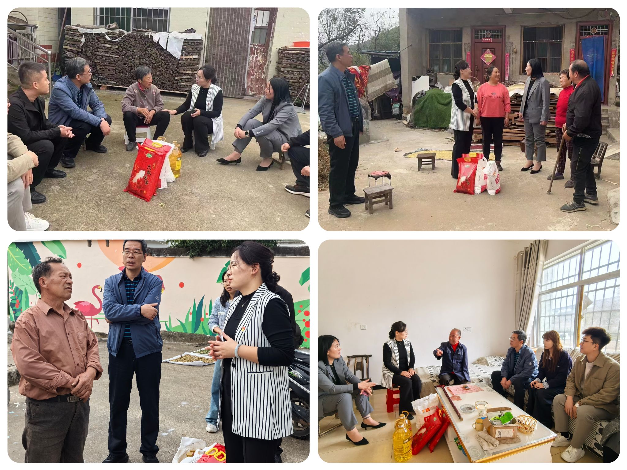 座谈会后,何红娟一行深入5户贫困户家中走访慰问,鼓励他们树立信心,积极面对生活挑战,并为他们送去了米面油等慰问品。青年教师们还结合实际情况,为贫困户提出了切实可行的帮扶建议,助力他们早日脱贫致富。
