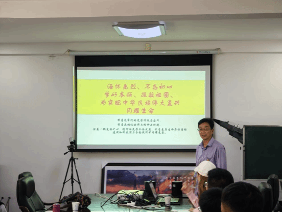 离退休处党总支退休第十二党支部书记闫海卿以《缅怀先烈、不忘初心、学好本领、报效祖国,为实现中华民族伟大复兴闪耀生命》为题,从抗美援朝的历史背景切入,带领同学们回顾了那段波澜壮阔的岁月。为了更深刻地感受那段艰辛历史的厚重,闫海卿带领同学们齐声合唱《中国人民志愿军战歌》,“雄赳赳!气昂昂!跨过鸭绿江……” 激昂的歌声回荡在会场,在场的每一个人都深受感染。闫海卿提到,抗美援朝精神是我们宝贵的精神财富,我们应当从中汲取力量,将爱国奉献的热情融入到日常的工作、学习和生活中,带着先辈们的光荣传统奋勇前行。随后,闫海卿结合自己30余年的学习、工作经历分享了地质行业的苦与乐,就吃苦耐劳与爱国奉献之间的紧密联系进行了阐释,并带领大家学唱了《勘探队员之歌》。他呼吁同学们在新时代要大力弘扬爱国奉献、艰苦奋斗的精神,让青春与生命在祖国的建设和科技实力的全面提升中绽放光彩。