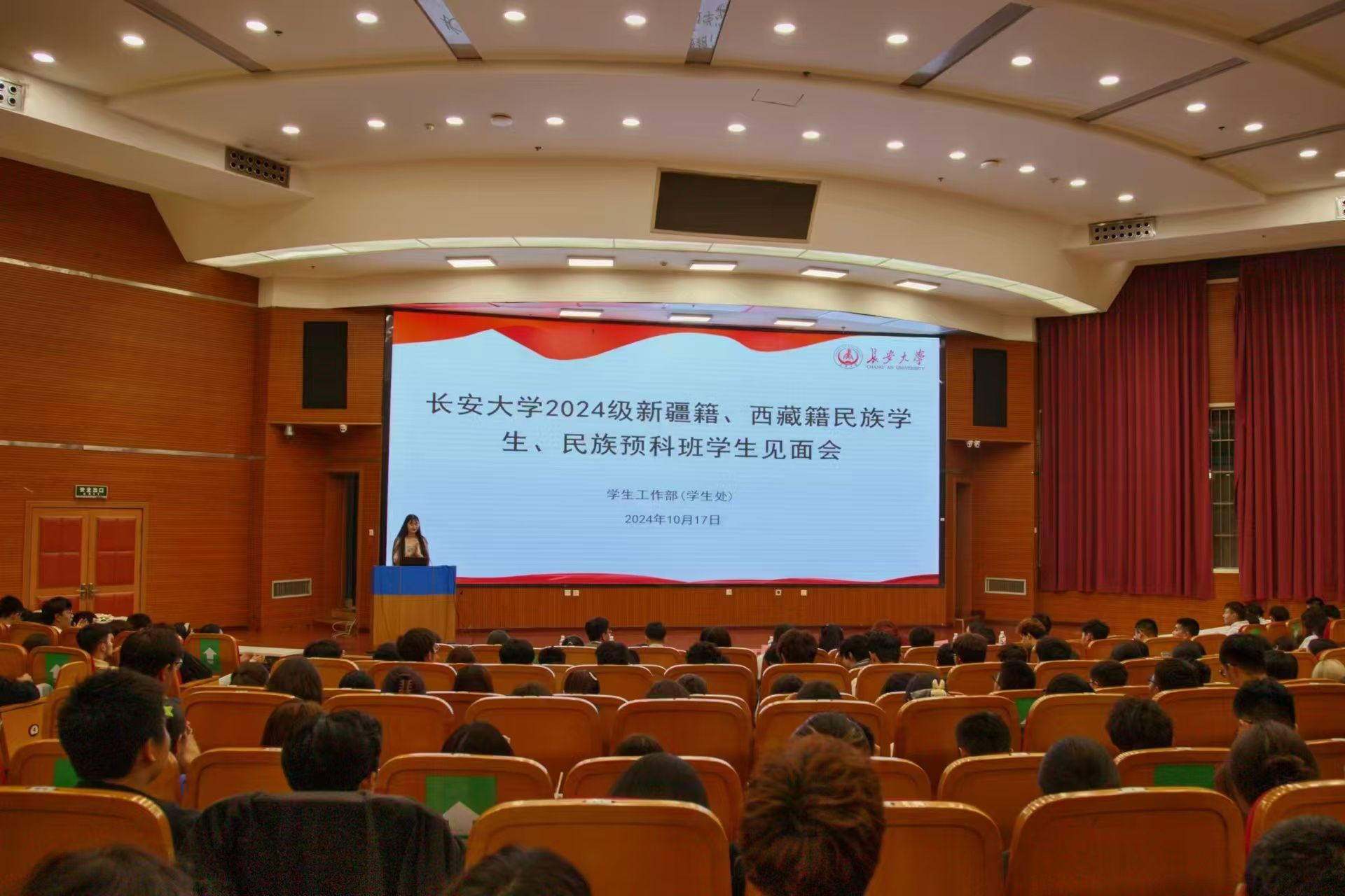 为进一步加强bat365民族学生教育管理服务工作,扎实推进各民族新生入学教育,10月17日晚,学工部在北校区图书馆西侧报告厅举行2024级新疆籍、西藏籍民族学生、民族预科班学生见面会。学工部副部长刘鹏出席会议。