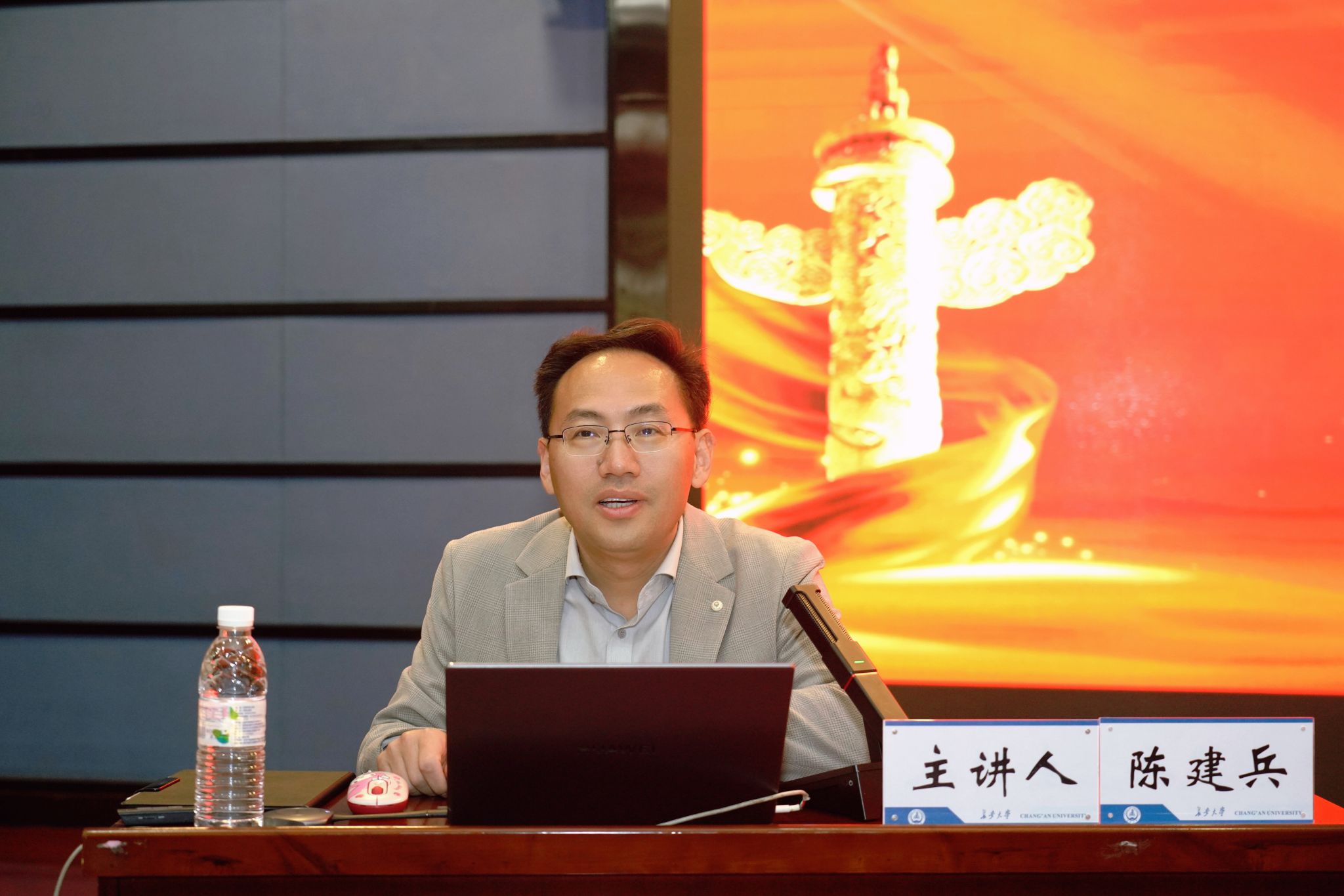 陈建兵主要围绕“两路”精神的缘起,“两路”精神在中交的践行与传承,新时代“两路”精神的价值与意义三个方面展开讲授。他指出,“两路”精神是交通人乃至全社会不可或缺的信念之基和动力之源,其主要内涵“一不怕苦、二不怕死”,体现了共产党人的敢教日月换新天的英雄气概,确保面对极端恶劣环境上得去;其次是“顽强拼搏、甘当路石”,体现了中国共产党人担当奉献,无私无畏的品格,确保“两路”畅通无阻;最后是“军民一家、民族团结”,体现了共产党人军民鱼水,各族一家的博大胸怀,确保各族人民的心稳得住。陈建兵介绍到,中国交通建设集团是两路精神重要的践行者和传承者,七十余年来,几代人长期坚守高原,千余工程技术人员踏遍进藏公路,秉持“老西藏”精神和“两路”精神。坚守与创新,成为中国交通建设集团的突出特色,既是对“两路”精神的直接传承,又赋予了“两路”精神鲜明的时代印记。