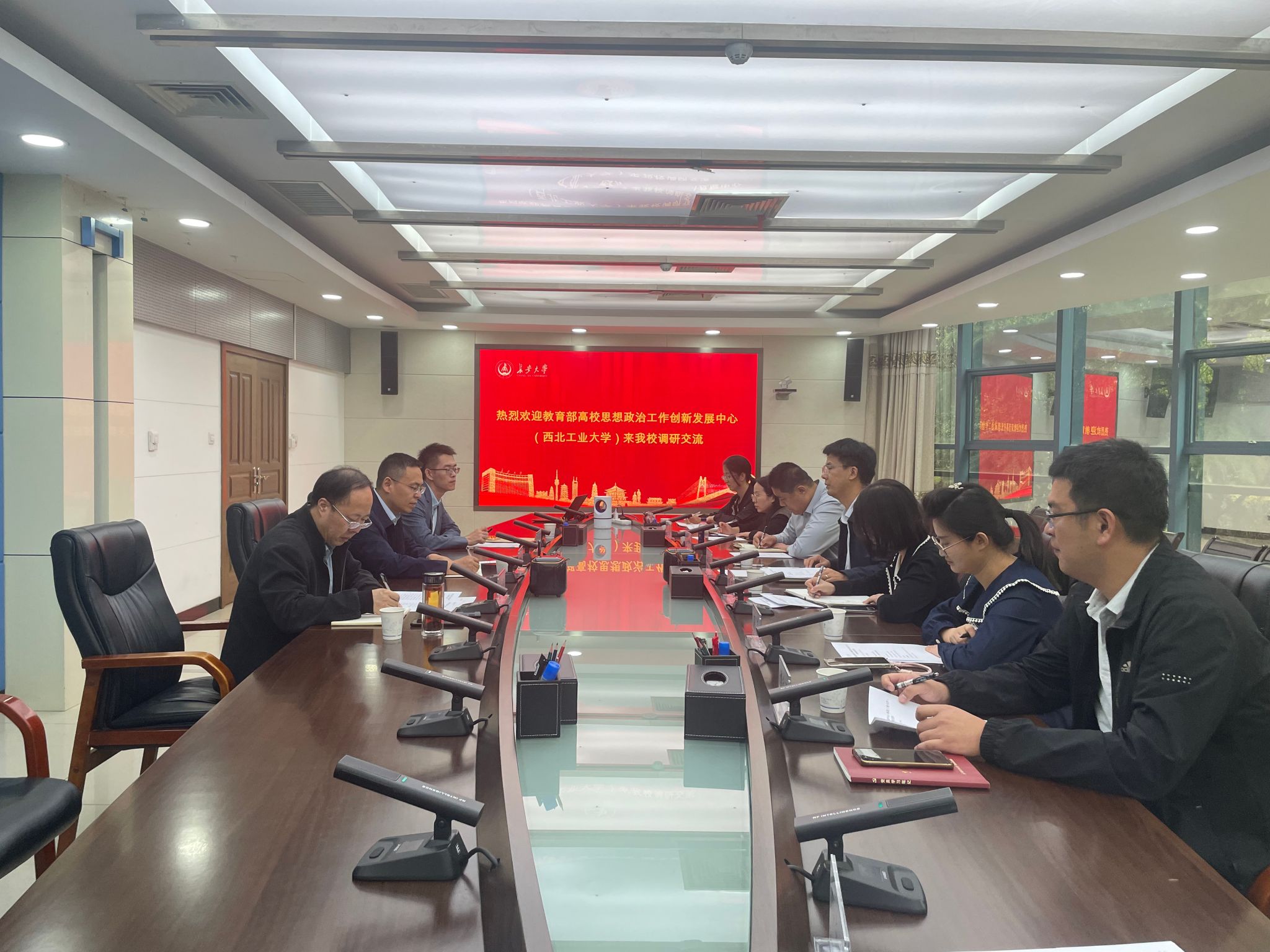 10月11日,教育部高校思想政治工作创新发展中心(西北工业大学)办公室主任、宣传部常务副部长张富利一行8人来校调研交流,bat365学工部、武装部部长姬国斌,教育部高校思想政治工作创新发展中心(bat365正版唯一官网)办公室主任武永江、副主任陈宏进参加座谈会。