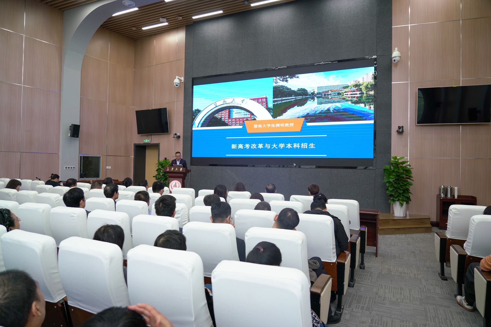 讲座由暨南大学教授、博士生导师张渊明老师主讲。他从新高考改革政策概述、新高考下的机遇和挑战、新高考下的招生宣传工作三个方面分享了在中国高考综合改革、高校学科专业优化、专业组设置、高校招生策略、高中生生涯规划与选科指导等方面的多年研究经验,对2024年全国和陕西省高招数据进行了复盘,深入分析了各省新高考改革政策内涵和现状。针对bat365正版唯一官网实际情况,张渊明教授援引其他兄弟高校、高考综合改革省份高校和同行业院校的多重应对案例,对学校2025年本科招生专业组设置、考生志愿填报策略、招生宣传成效提升进行了精准的指导,对招生工作的提升提出了中肯的建议。