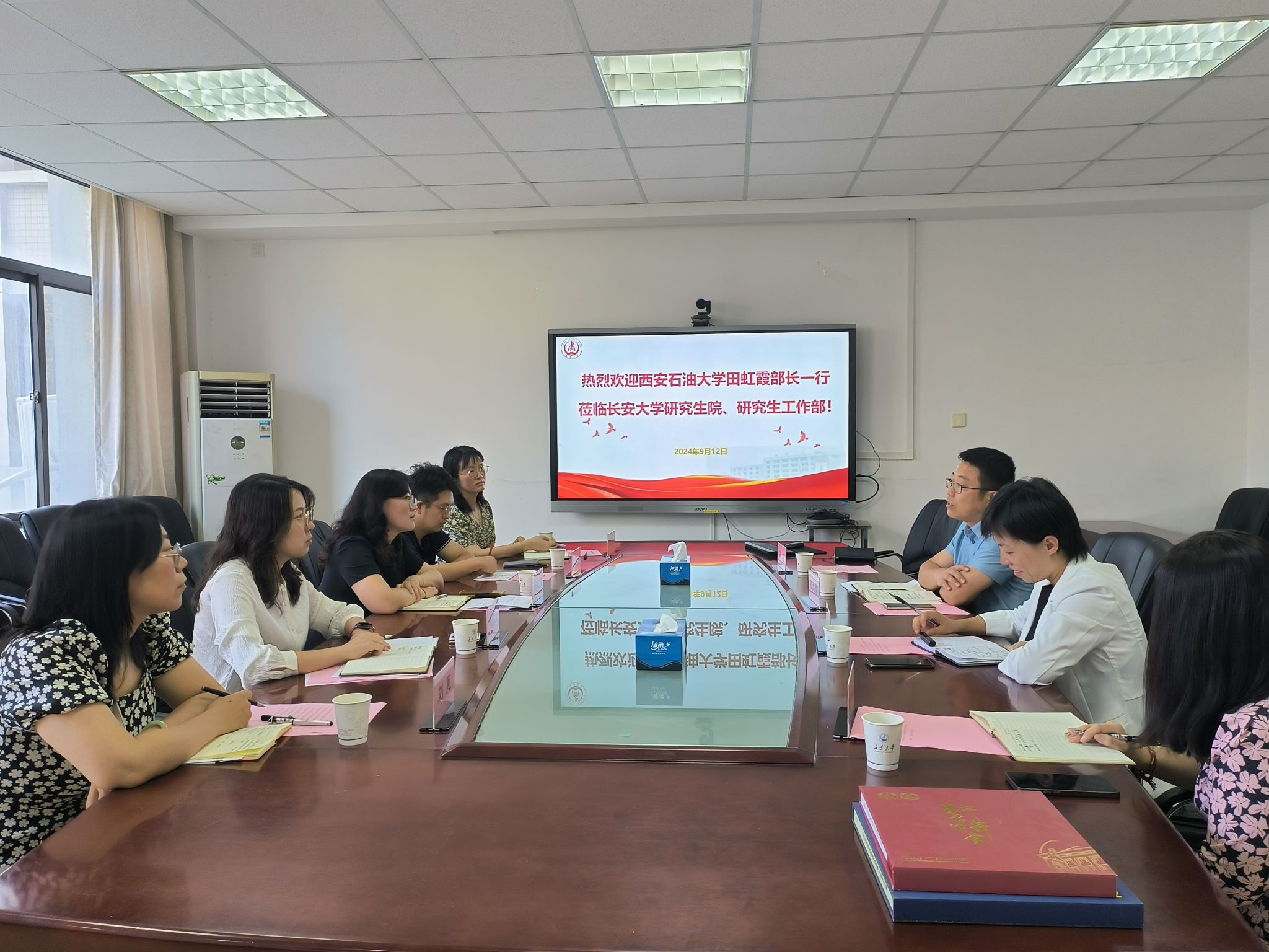 9月12日上午,西安石油大学研究生工作部部长、研究生院副院长田虹霞一行五人来bat365研究生院、研究生工作部进行座谈交流。bat365研究生工作部部长高天智、研究生工作部副部长王妍,西安石油大学研究生工作部思想教育与管理办公室主任宋亚文等参加座谈会,会议由高天智主持。