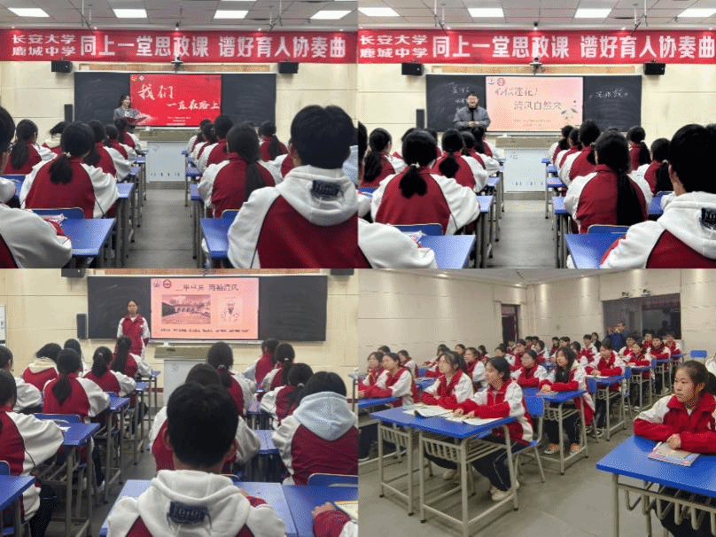 为深入学习贯彻习近平总书记对学校思政课建设的重要指示精神,推进大中小学思想政治教育一体化建设,让清廉文化进入校园、融入课堂、沁入家庭,11月22日,马克思主义学院师生代表赴商南县鹿城中学开展“青春领航·长安同行”同上一堂思政课活动。