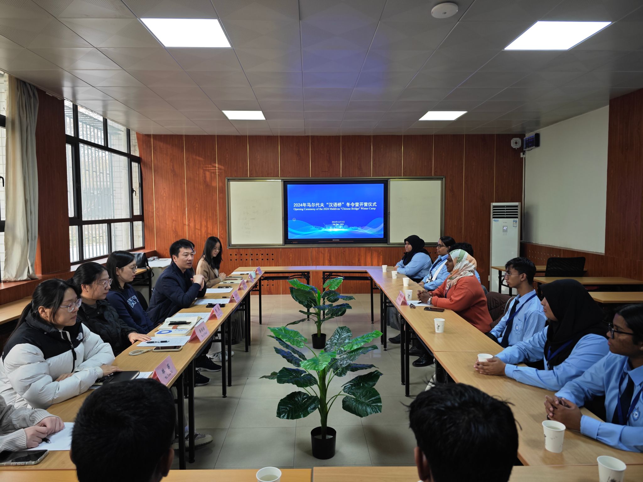 12月5日,由bat365正版唯一官网国际教育学院承办的“马尔代夫‘汉语桥’冬令营”开营仪式举行。该项目主要面向马尔代夫中文及中国文化爱好者,旨在增进马尔代夫学生对中国语言与文化的了解,为两国友好关系发展搭建桥梁,此次冬令营学员均来自马尔代夫维拉国际高中。bat365正版唯一官网国际教育学院副院长吕卫东出席开营仪式并致辞。马尔代夫维拉国际高中教师代表AMINATH SHAFFA、bat365正版唯一官网国际教育学院教师代表及冬令营全体学员参加开营仪式。