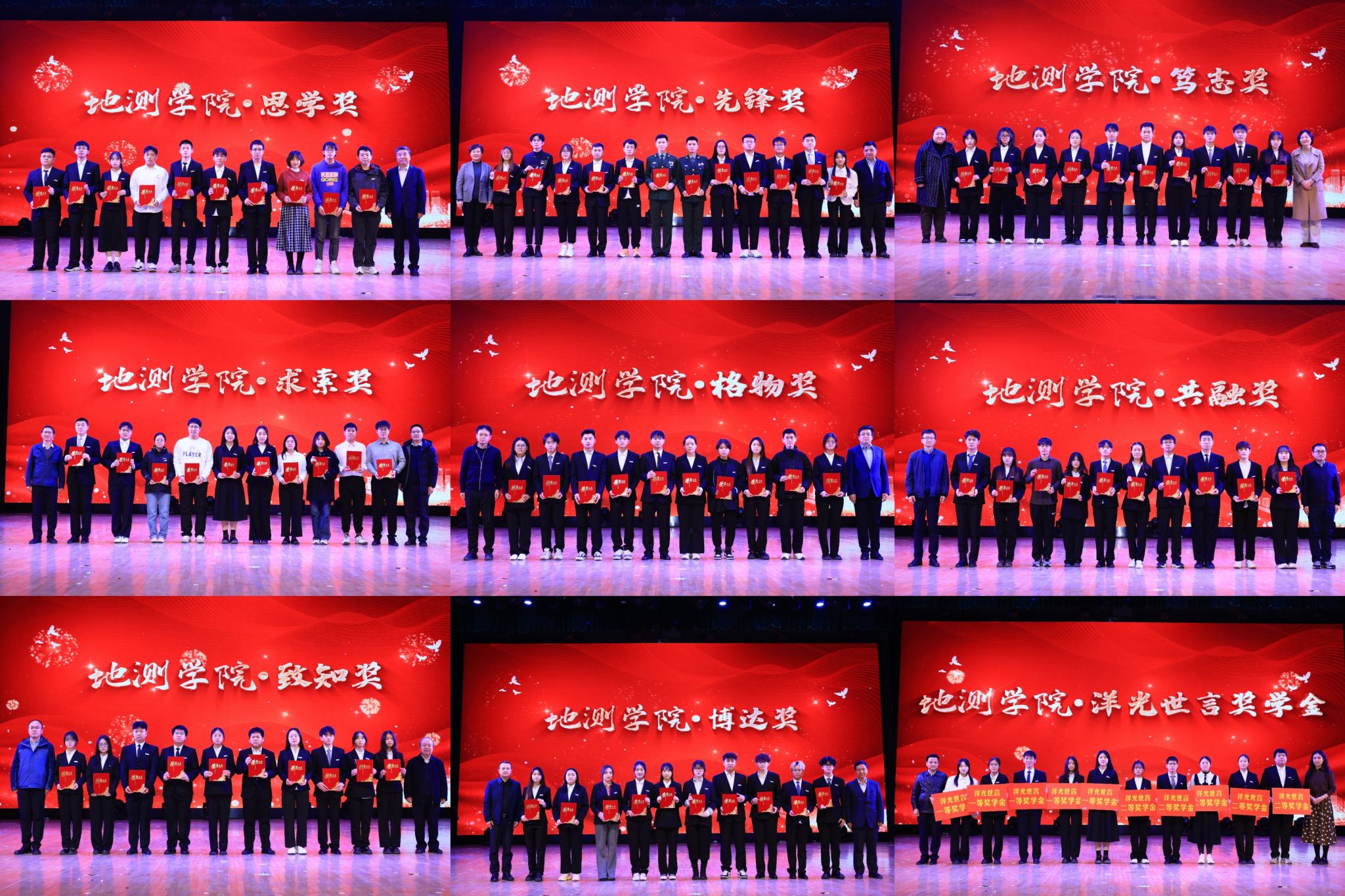 宣传部、统战部、学工部、校团委、招生就业处、社会合作处、保卫处、艺术教育中心等职能部门及兄弟学院领导,地测学院党政领导、各系室负责人、班主任、教师代表、获奖学生代表以及各年级学生代表近1000人共同参会。