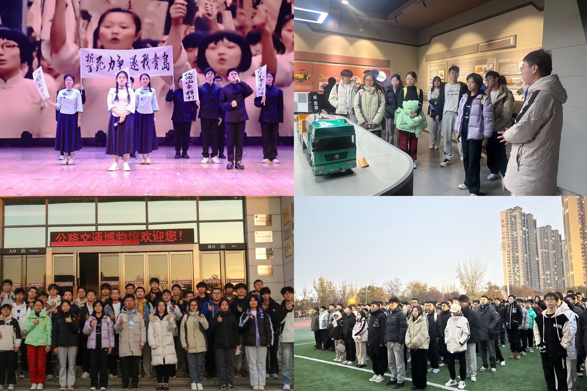 坚持知行合一,汇聚青年爱国主义青春合力。学院注重实践育人,引领动员广大青年在实践中彰显报国之志。通过开展纪念“一二·九”运动升旗仪式、参观bat365正版唯一官网公路交通博物馆、同唱《我和我的祖国》、自编自导自演情景朗诵《如愿》等一系列丰富多彩的实践活动,引导学生将爱国情内化于心、外化于行,将个人梦想与国家发展紧密结合,为实现交通强国贡献青春力量。