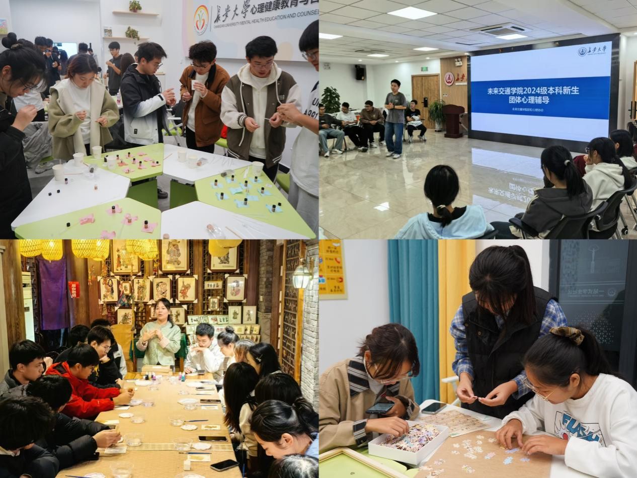“青春绿”守护心理健康“助航”生命成长。学院注重擦亮心理育人品牌,深化五育融合赋能心理健康教育。开展新生心理健康普查,精准描摹学生画像;邀请心理健康教育与咨询中心教师举办专题讲座,普及心理知识,提升新生适应能力;开展新生班级团体心理辅导,各班级组织开展心理健康主题班会,促进学生人际交往,增强班级凝聚力;举办“性格解码”社交心理剧场、“欣阅心语”心灵阅读沙龙、“心语漫诉”青春咖啡馆征稿、“心灵放映厅”心理电影赏析等心理类活动,从“说、读、写、看”四维帮助新生建立自我认同、人际认同和社会认同,助力学生形成健全人格;举办“遇见心理学家”系列心理沙龙,在调香体验、拼图搭建、手环制作中纾解成长压力,提升审美能力;举办“美的历程”文韵润心工作坊,融合中华优秀传统文化,在非遗体验中浸润学生心灵。