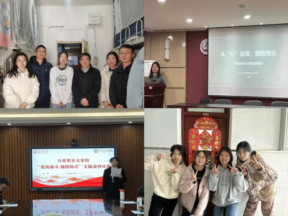 坚持以美化人,搭建文化育人平台。以“共同参与+文化熏陶+气氛感染”为主,开展丰富多彩的校园文化活动,为新生之间培养深厚感情,快速适应校园氛围奠定基础。学院主要领导多次慰问全体新生,深入走访学生宿舍,围绕学习、生活、成长等方面同新生密切交流;举办“开卷有益·书香马院”读书笔记打卡活动、宿舍装饰大赛、“庆华诞,扬国魂”国庆主题艺术大赛作品征集大赛、“爱国奋斗 强国励志”主题演讲比赛等,提升学生的文化素养与爱国情怀;举办心理健康教育主题讲座、主题团辅活动,共同营造乐观向上、团结和谐的班级氛围,打造“浸润式”育人环境。