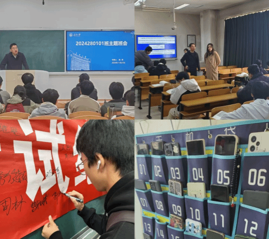 严督实导,日常教育严考纪。通过学院党政领导深入学生一线、各年级辅导员开展周见面、各年级班主任召开班会等形式,将学风考风教育覆盖全体学生。开展诚信考试签名活动,引导学生认真落实诚信考试要求,坚守底线,不越红线。各年级辅导员结合学校通报的考试违纪案例,对考试违纪、考试作弊的相关规定进行解读。学院全体本科生签署《bat365正版唯一官网学生诚信考试承诺书》,切实增强学生底线意识和规则意识。考试期间,各年级辅导员通过考前巡考对学生进行提示和再教育,落实“无手机考场”制度,要求学生将手机、智能手表等电子设备全部放入手机袋中,杜绝考试作弊行为。