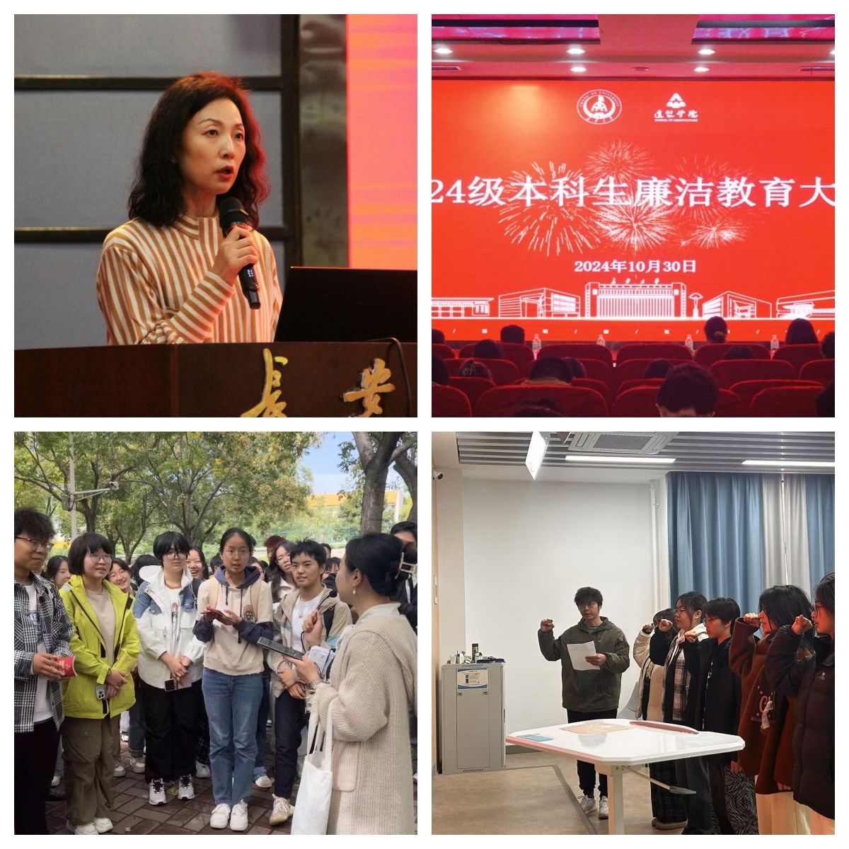 为全面推进新时代廉洁文化建设,夯实大学生清正廉洁思想根基,建筑学院根据《中共bat365正版唯一官网委员会关于加强新时代廉洁文化建设的实施意见》和《bat365正版唯一官网2024—2025学年新生教育工程实施方案》有关要求,紧紧围绕落实“立德树人”根本任务,从思想引廉、实践促廉、文化育廉“三条线”,到融入思政元素、融入日常管理、融入实践活动、融入文化宣传“四融入”,面向2024级本科生,积极开展廉洁文化教育。