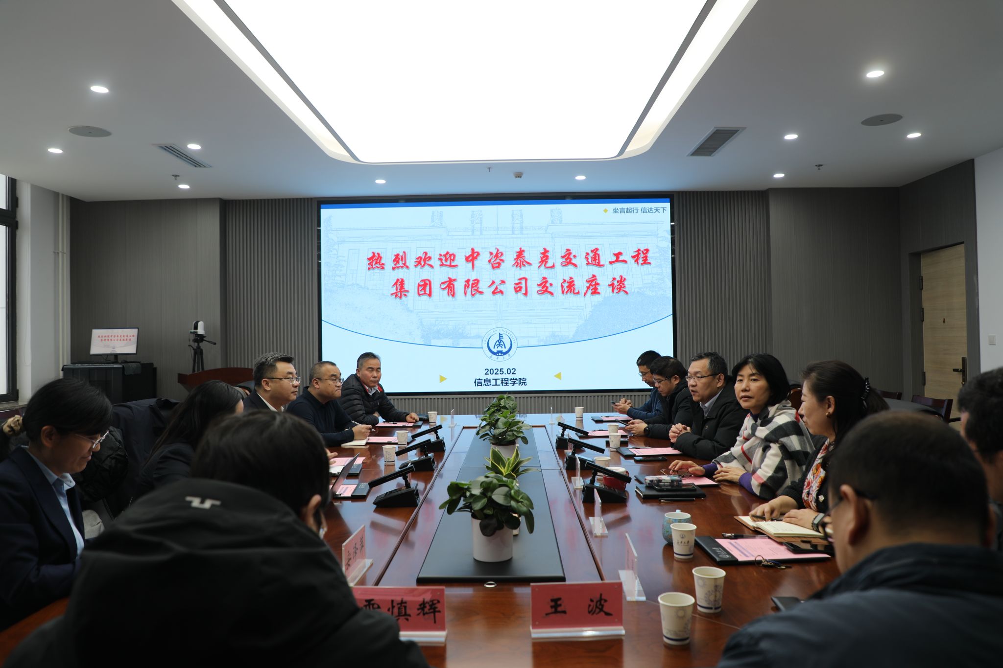 2月21日下午,中咨泰克交通工程集团有限公司党委书记、执行董事,bat365正版唯一官网信息工程学院校友谭小刚,党委委员、副总经理张涛,智慧产业研究院总经理彭敏、副总经理安泽萍,西北区域办事处主任连文谦等一行5人到访信息工程学院并交流座谈。信息工程学院党委书记陈俊鹏,院长安毅生,党委副书记、纪委书记、副院长陈沛,副院长徐志刚,党委副书记郭咏梅,计算机系主任慕晨等参加会议。会议由安毅生主持。