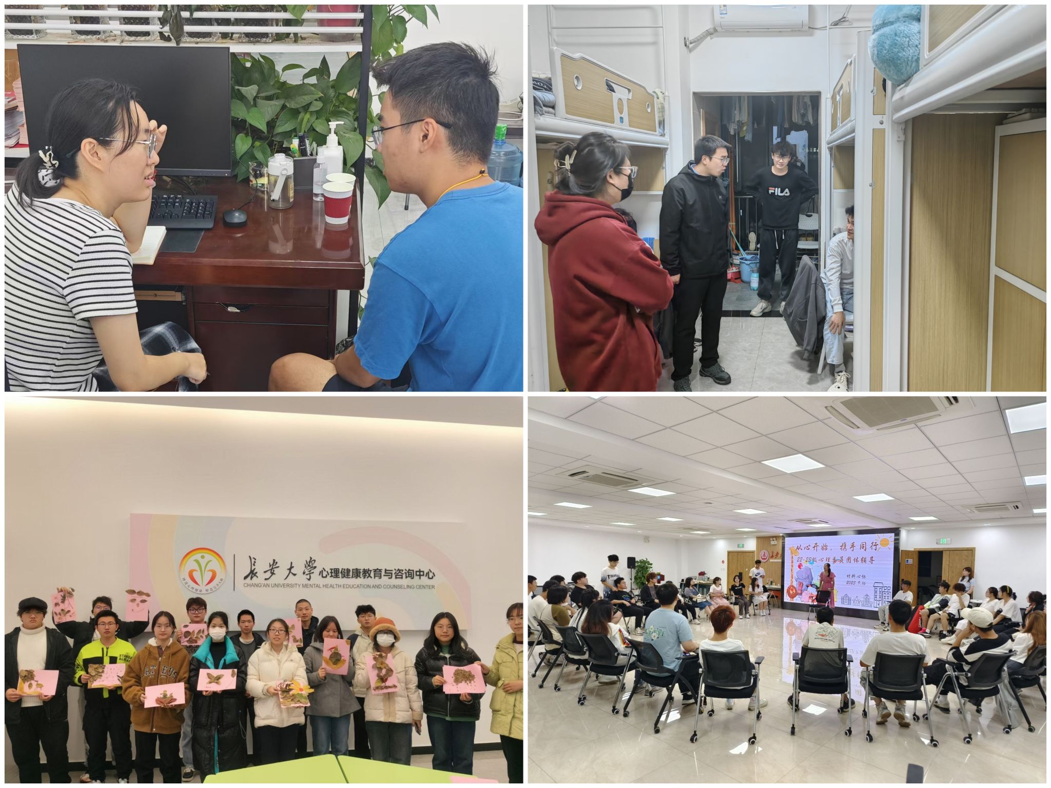推进四类活动,增添育人亮色。学院将心理健康活动融入“五育并举”大思政格局,助力校园心育氛围营造。其一,聚焦重要节点,学院积极构建“四季引领”活动新格局,紧密围绕季节变化对学生心理状态波动影响开展各类主题教育活动,探索全方位、多层次地浸润式育心教育。其二,深挖传统内涵,学院依托“我为家乡代言”风采展示大赛、“12·5”心理健康周等学院特色品牌活动,串联学生日常成长发展,准确把握学生“兴趣点”,不断创新形式,激发品牌活力。其三,关注阶段差异,学院立足新生入学适应期、学业攻坚压力期、就业择业迷茫期等不同阶段,构建新生破冰、朋辈引领、减压赋能、自我探索等多维模块,为学生量身打造系统心理支持。其四,加强交流合作,不断探索创新协同联动模式,打通信息壁垒,实现资源共享共赢。学院先后与校心理中心、公路学院、运输学院等积极联合组织多场团辅活动和专题讲座等。