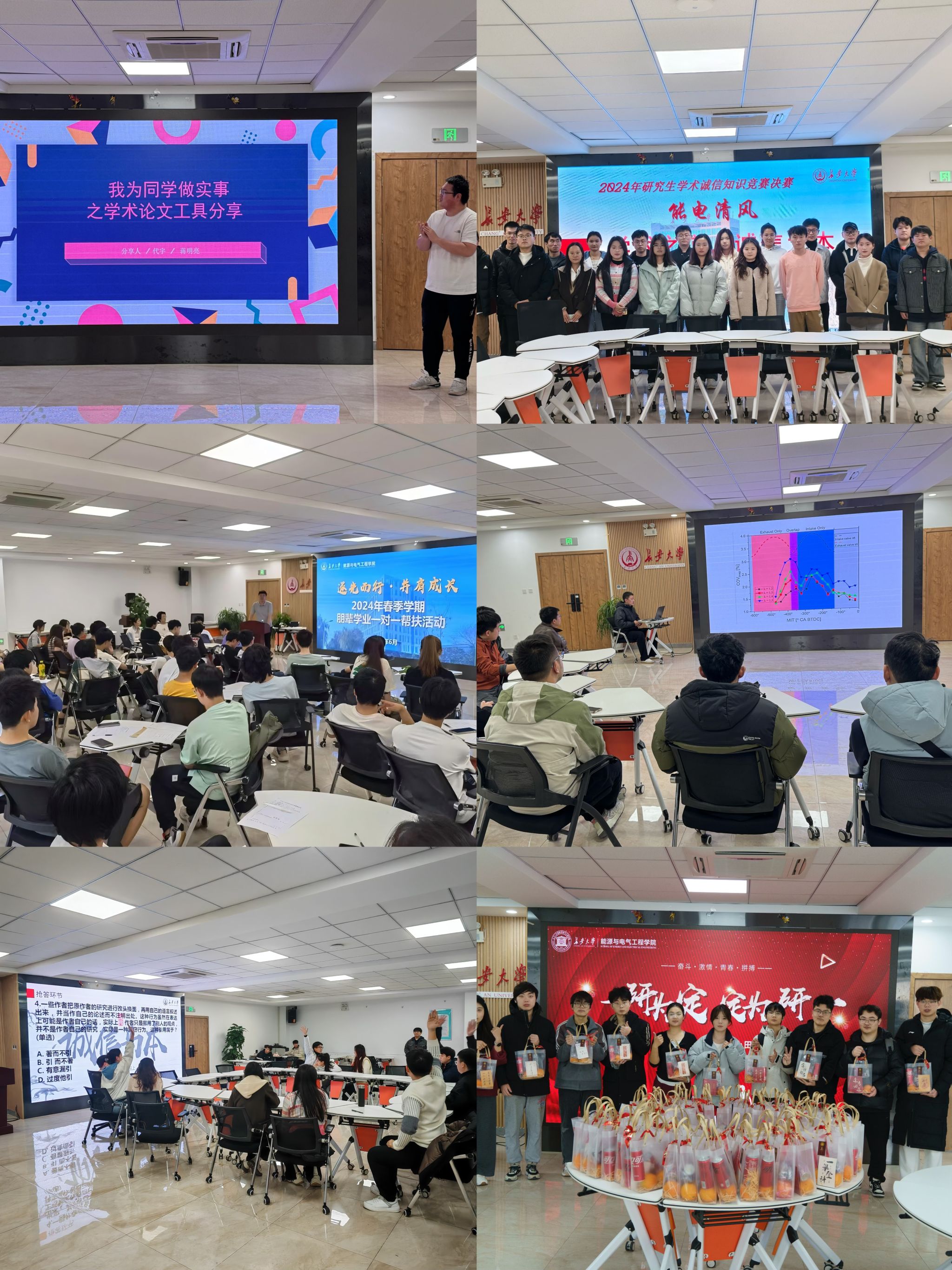 聚焦学业赋能,提升成长“支撑力”。学院坚持加强学风建设,整合教学资源,搭建学业辅导平台,充分发挥朋辈引领作用,积极为学生的学业充电赋能。坚持每周定期开展“能学致远,电启未来”学业帮扶活动,组建 “学霸帮扶团”,由成绩优异的学长学姐担任志愿者开展学业辅导;针对《高等数学》《大学物理》等基础课程学习薄弱的同学进行“一对一”结对,帮扶志愿者重点围绕重难点学科、重修科目等,制定专门学习计划,采用共同自习等多种方式精准帮扶;开展四六级经验分享会、考研保研经验分享会和科创竞赛经验分享会等,为学生提供宝贵经验,为学生成长奠定坚实基础。