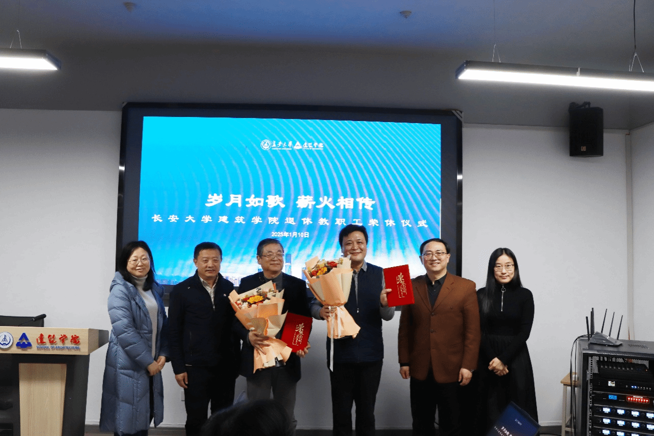 1月10日,建筑学院在南校区西院建筑馆三楼会议室举办“岁月如歌 薪火相传”——建筑学院退休教职工荣休仪式,向为学院奉献多年的李明、胡立军两位荣休老师表达崇高敬意与美好祝福。院领导班子、各系所办主任及教职工代表参会。仪式由院党委副书记、副院长冯鹃主持。
