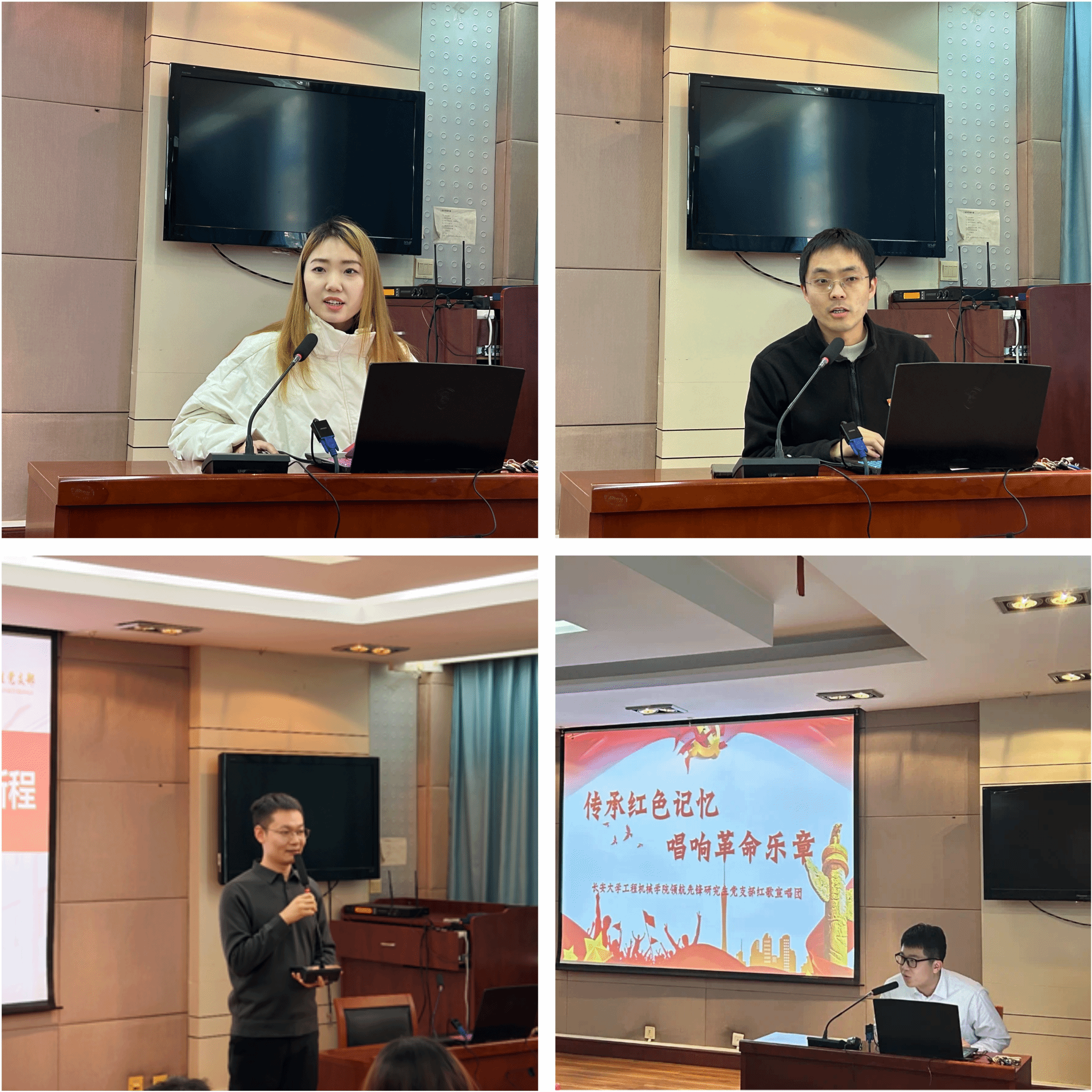 第四批全国党建工作样板支部——领航先锋研究生党支部组织委员王萌璠介绍了支部“党建+”工作特色,重点分享了支部政治理论学习和实践帮扶育人的经验。西安建筑科技大学机电工程学院研究生第一党支部书记苏晚驰介绍了学院“红色齿轮”党建工程。魏斌斌讲授“立制造强国志,做强国奋斗青年”主题党课,他从亲身经历出发分享了作为一名驻村干部的收获与感悟。领航先锋研究生党支部红歌宣唱团成员张宇洋领学红歌《游击队歌》,全体成员在领航先锋研究生党支部红歌宣唱团成员的带领下合唱《游击队歌》,铭记先辈故事,传承英烈精神。与会成员还围绕“党建创新做法和成功经验”“党建与科研双融双促”展开充分交流。