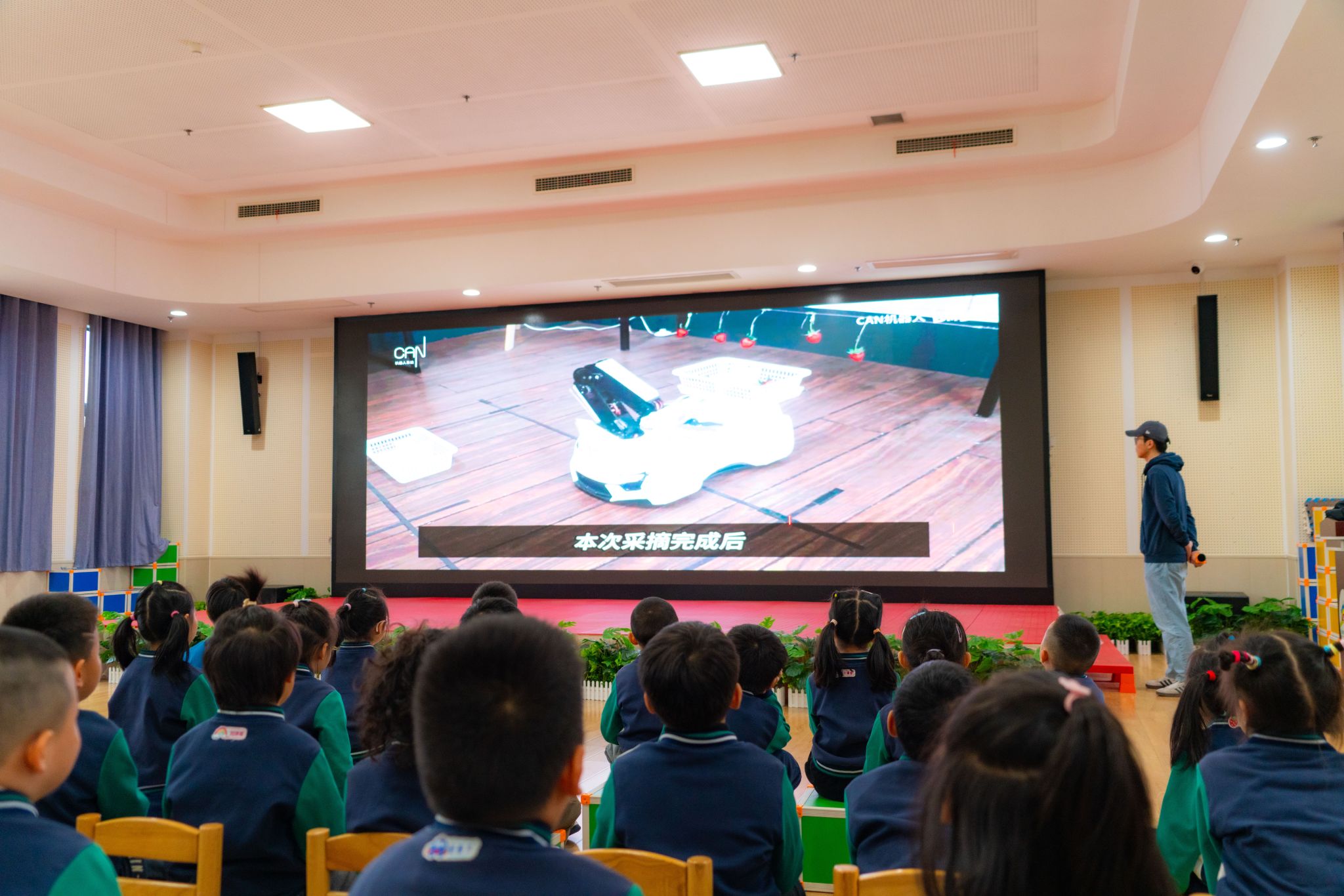 活动现场,机器人俱乐部赵浩用生动有趣的语言向孩子们介绍了机器人的基本原理、分类、发展历程以及在现代社会中的应用。通过PPT展示、实物模型及互动问答等形式,孩子们不仅学到了丰富的科学知识,还被机器人技术的神奇魅力深深吸引,纷纷表示想要了解更多关于机器人的知识。