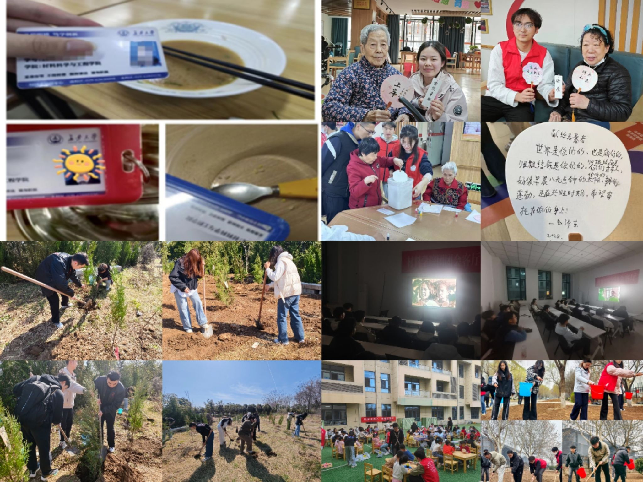 绿色环保:服务双碳目标。学院30余名志愿者满怀热忱奔赴汉长城遗址公园,开展义务植树活动,同时积极开展环保知识宣传,向过往市民普及环保理念,呼吁更多人参与到生态环境保护中来,将雷锋精神融入生态文明建设,为共建美丽家园贡献青春力量。金色夕阳:服务老年健康。学院团委组织30余名志愿者前往未央宫街道综合养老服务中心,开展“漆扇传情”主题助老志愿服务活动,将传统工艺与志愿服务相结合,这是“大思政”育人中弘扬中华传统美德的生动体现。